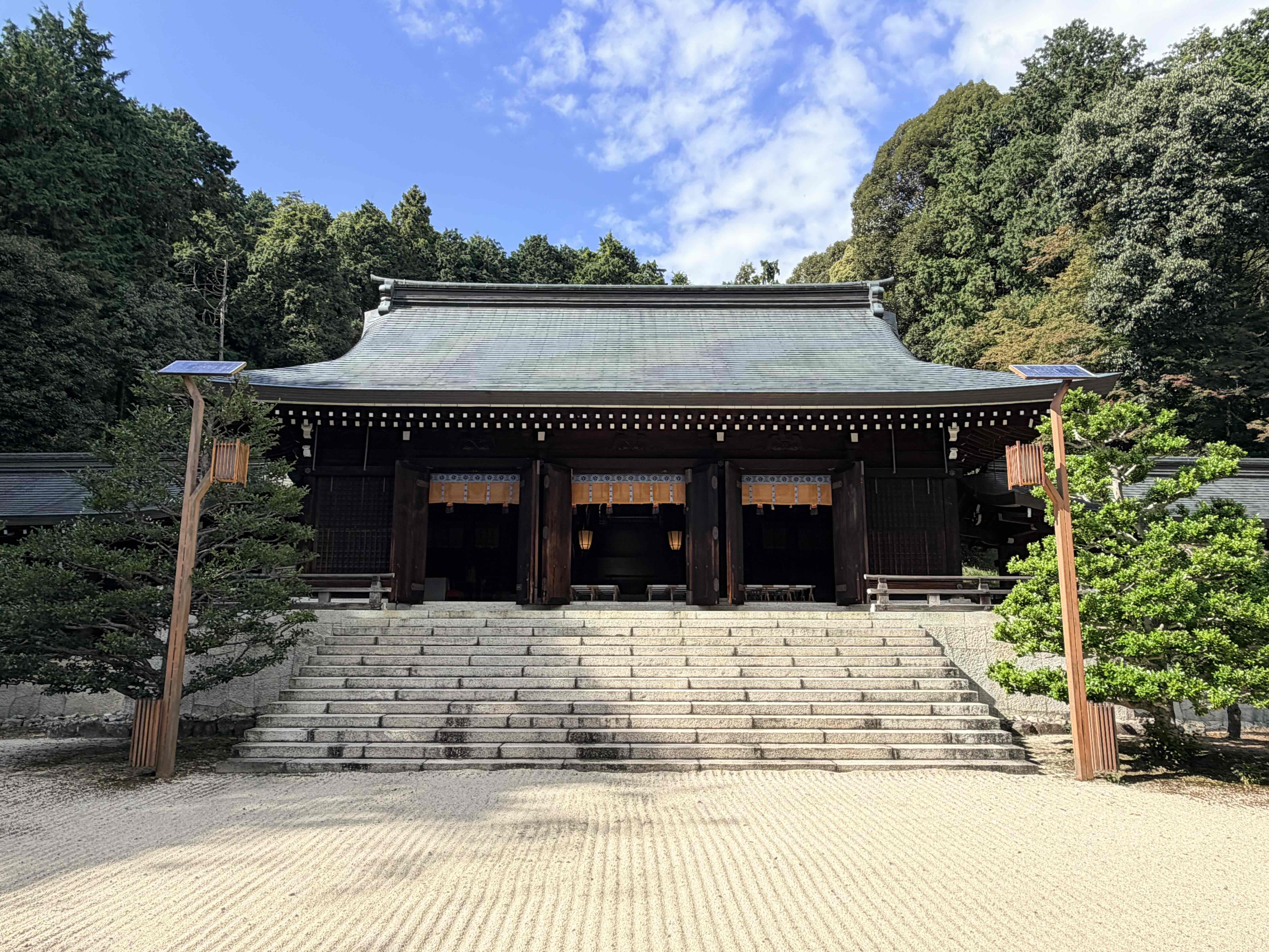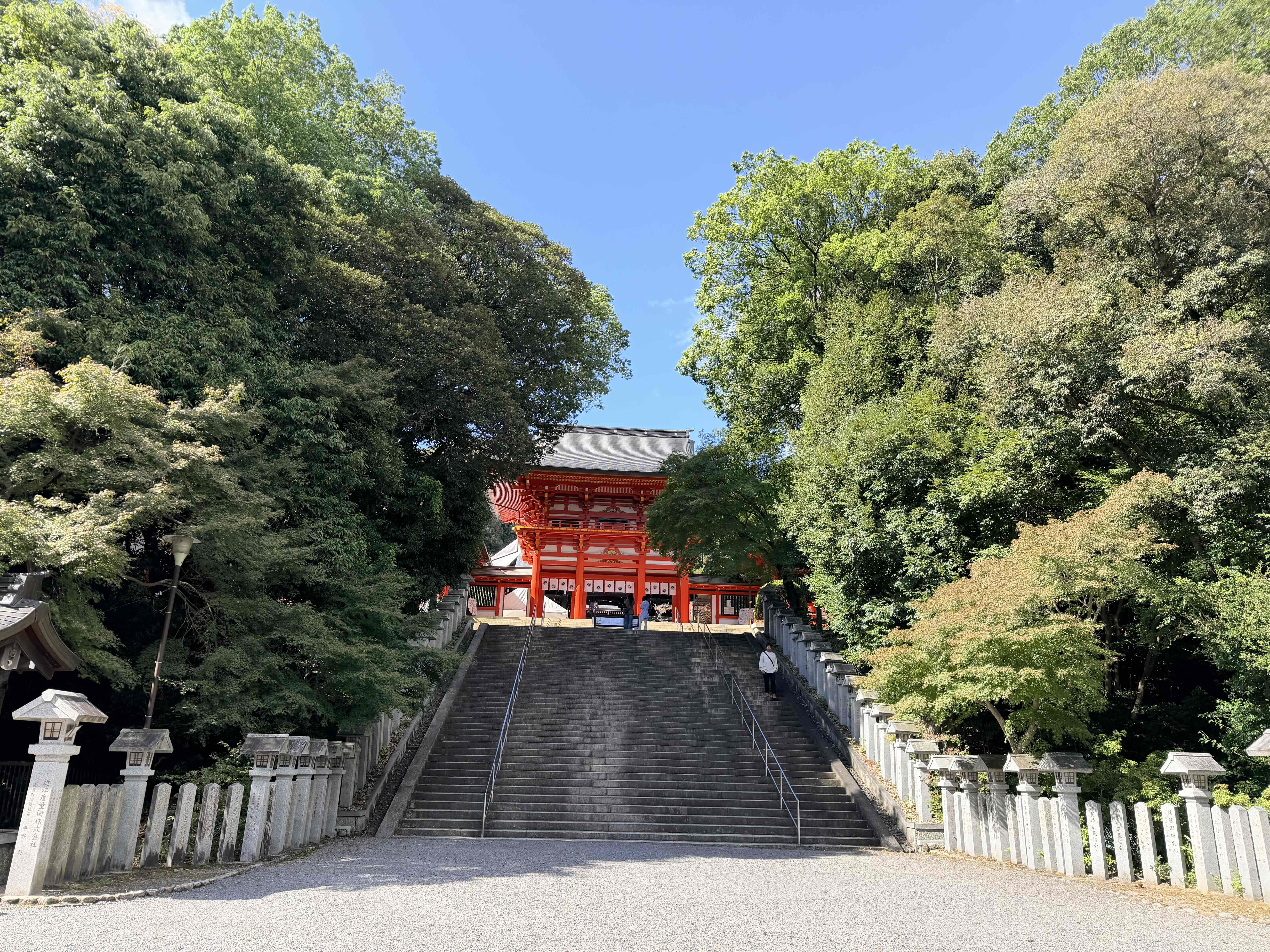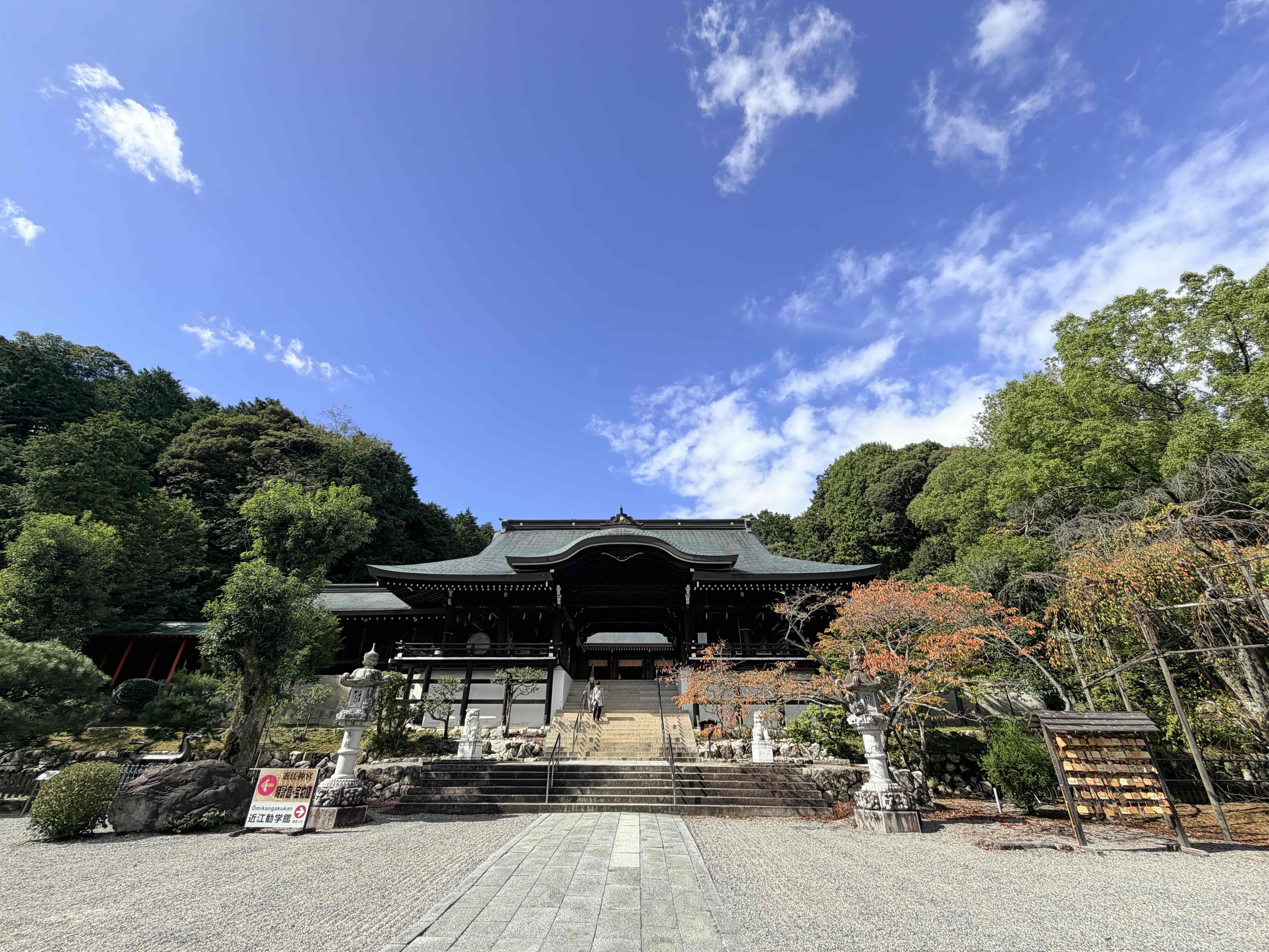 滋賀県西部の大津市中心部にほど近い、琵琶湖西岸の山裾にあります。旧官幣大社・勅祭社で、社殿は近江造り・昭和造りといわれ、近代神社建築の代表として登録文化財となっています。