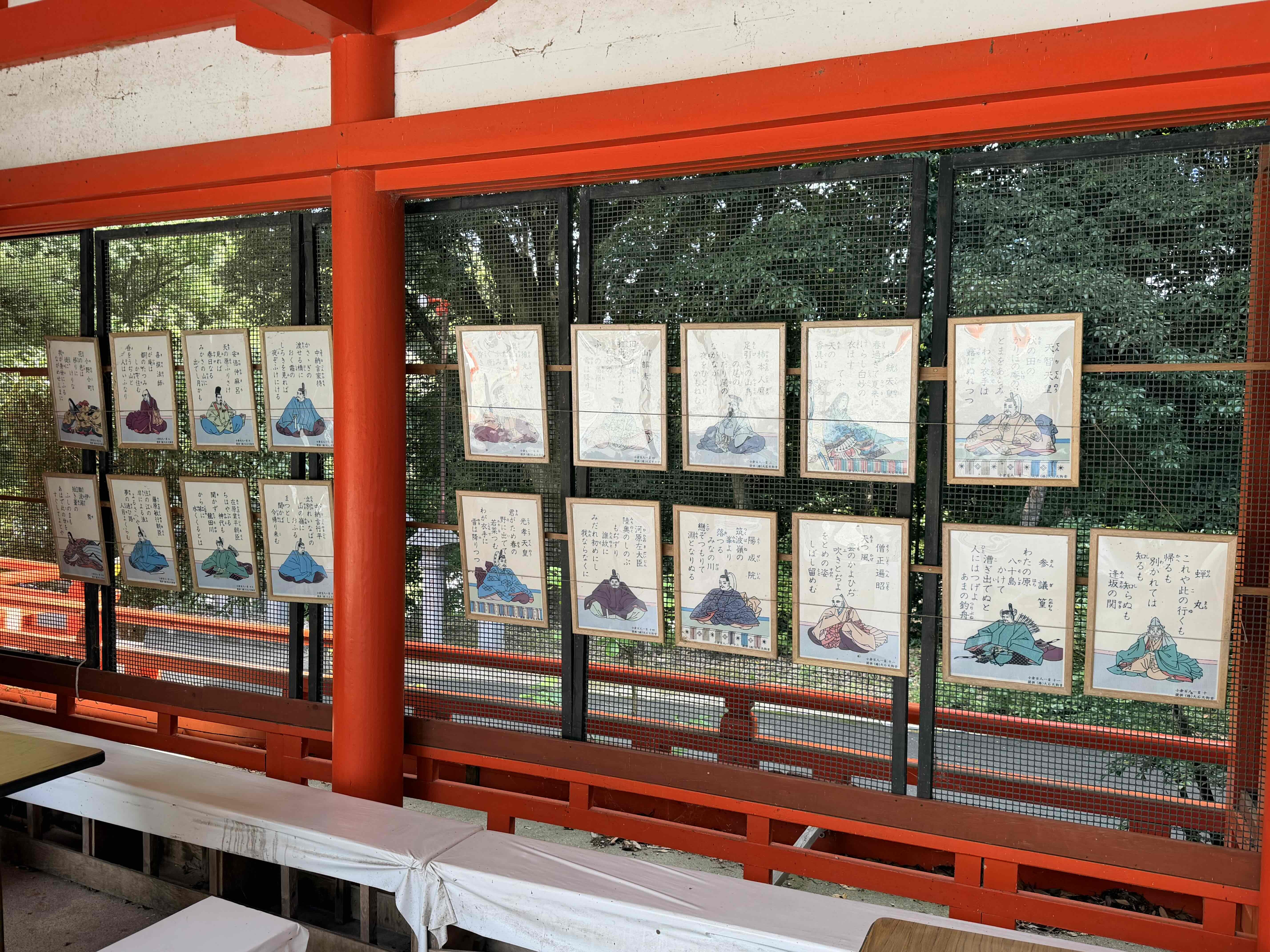 また、『小倉百人一首』の第1首目の歌を詠んだ天智天皇にちなみ、競技かるたのチャンピオンを決める名人位・クイーン位決定戦が毎年1月に行われている。このほかにも高松宮記念杯歌かるた大会・高校選手権大会などが開催されているように、百人一首・競技かるたとのかかわりが深い。競技かるたを題材にした漫画・テレビアニメ・映画『ちはやふる』の舞台ともなった。