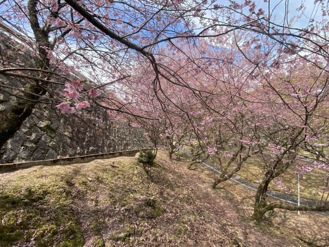 春には、早咲きの ハツミヨザクラ をはじめ、 ソメイヨシノ やしだれ桜など約300本の桜が咲き誇り、多くの人が花見を楽しみに訪れます。見頃は例年3月中旬〜4月上旬です。