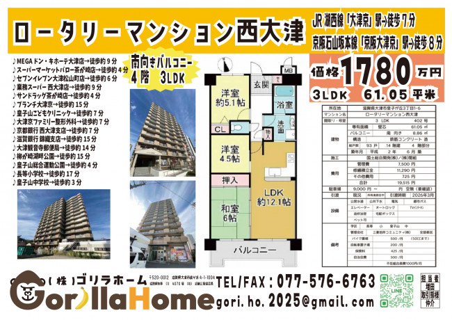 内覧予約・資金計画のご相談はお気軽に【ゴリラホーム】までお問い合わせください。