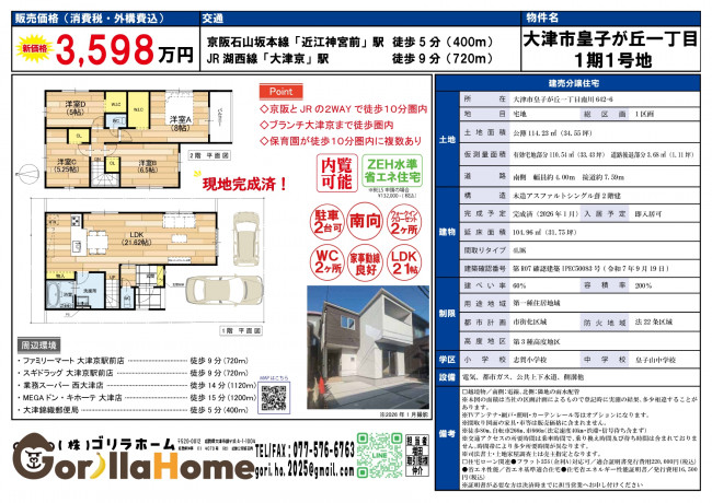 1. 皇子が丘一丁目 1期1号地(大津京エリア)
