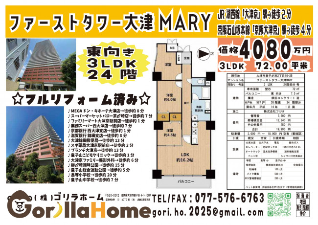 現在、ファーストタワー大津MARYは売り物件が14件あり、