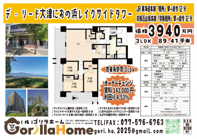 🦍新物件情報|デ・リード大津におの浜レイクサイドタワー🦍