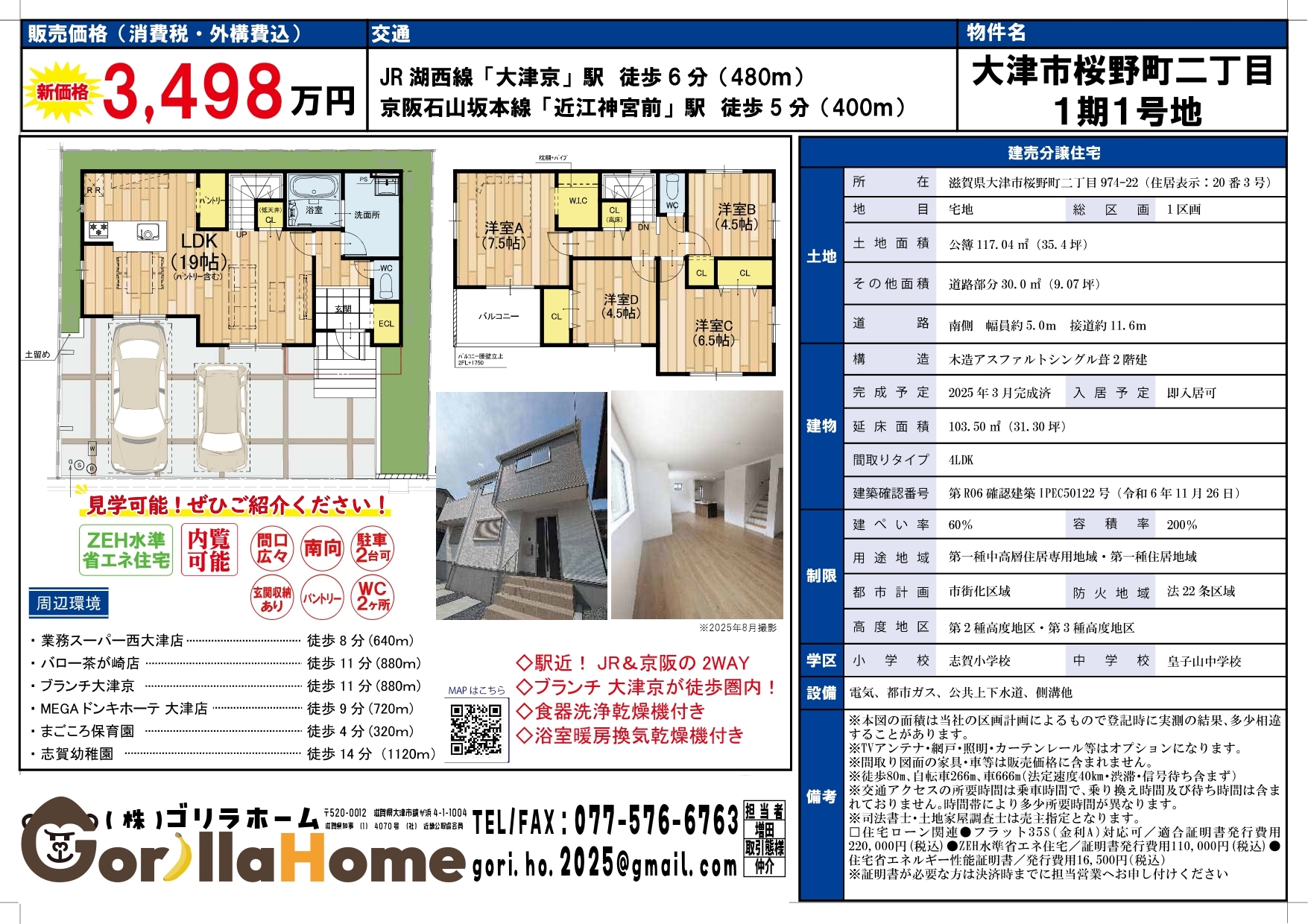 | 築年数 | 新築 | 建物面積 | 土地:117.04㎡(35.40坪) 建物:延床面積103.50㎡(31.30坪) |