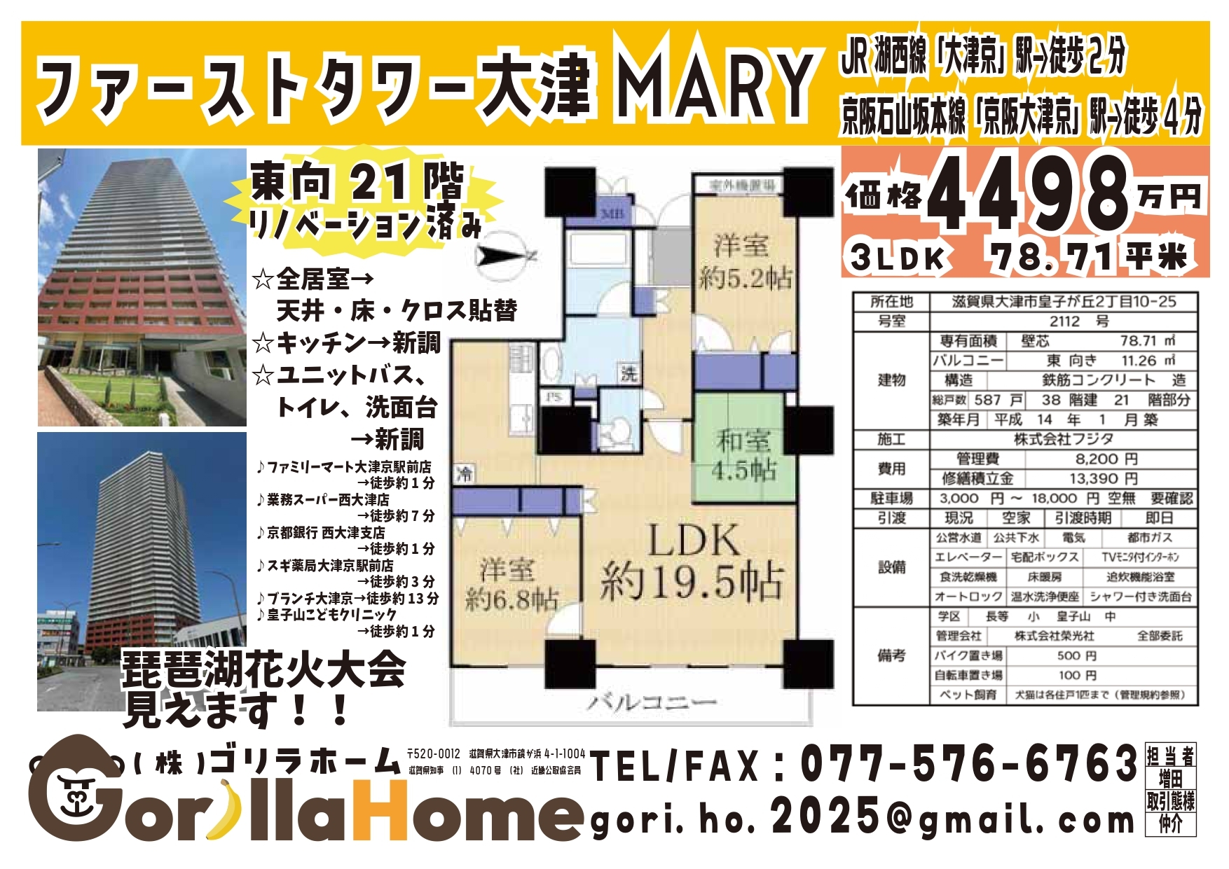 | 建物名 / 物件名 | ファーストタワー大津MARY |