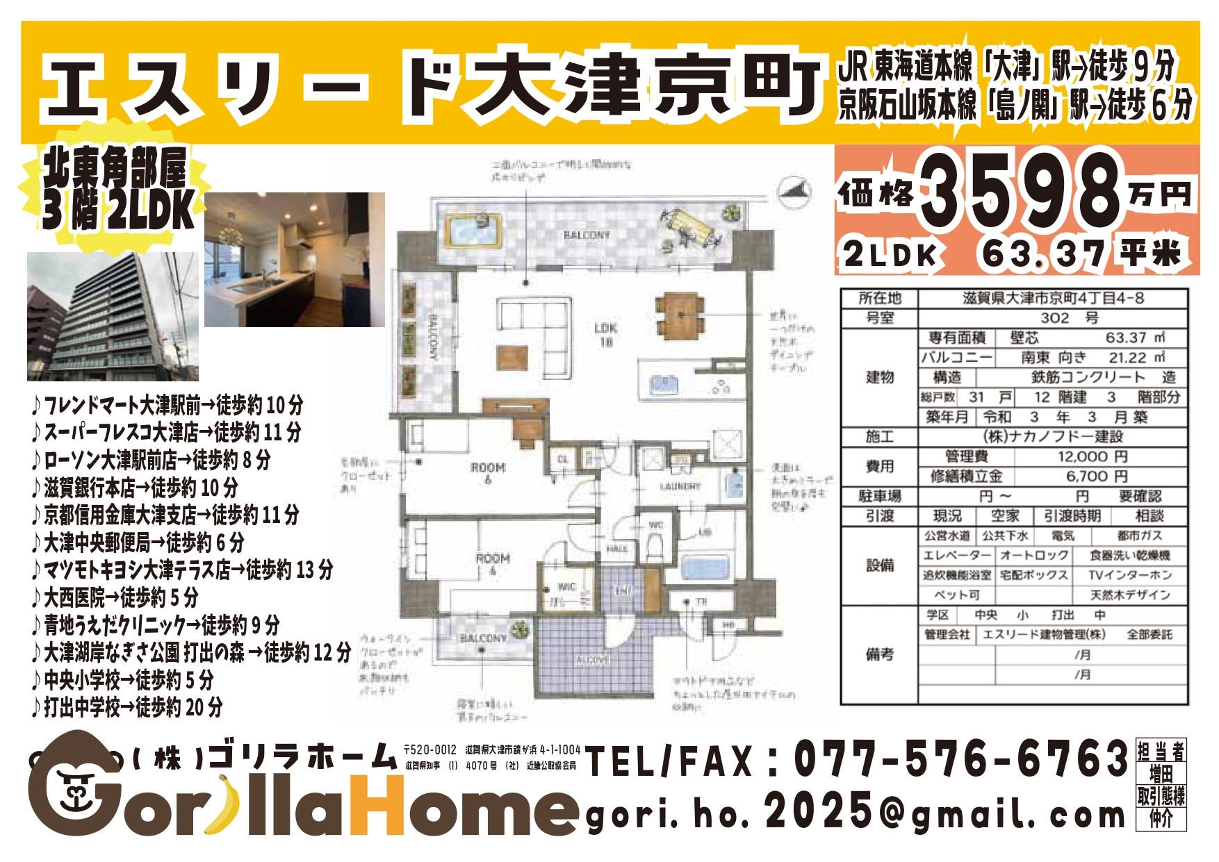 | 交通 | JR東海道本線「大津」駅(徒歩9分) 京阪石山坂本線「島ノ関」駅(徒歩6分) |