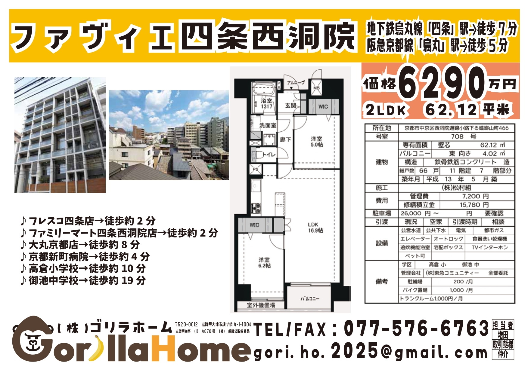 | 建物名 / 物件名 | ファヴィエ四条西洞院 |