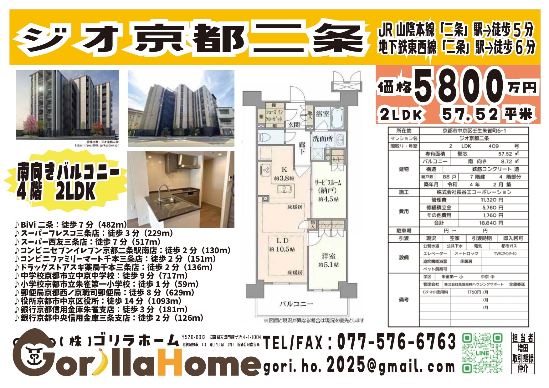 | 交通 | JR山陰本線「二条」駅(徒歩5分) 地下鉄東西線「二条」駅(徒歩6分) |