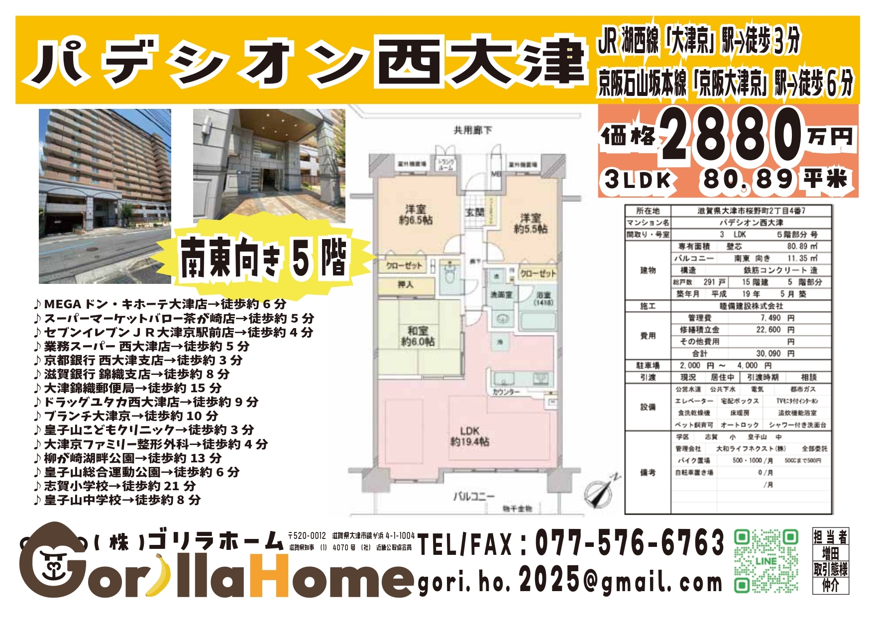| 交通 | JR湖西線「大津京」駅 (徒歩3分) 京阪石山坂本線「京阪大津京」駅 (徒歩6分) |