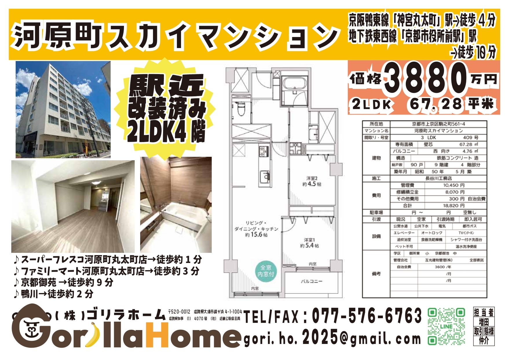 | 交通 | 京阪鴨東線「神宮丸太町」駅(徒歩4分) 地下鉄東西線「京都市役所前駅」駅(徒歩10分) |