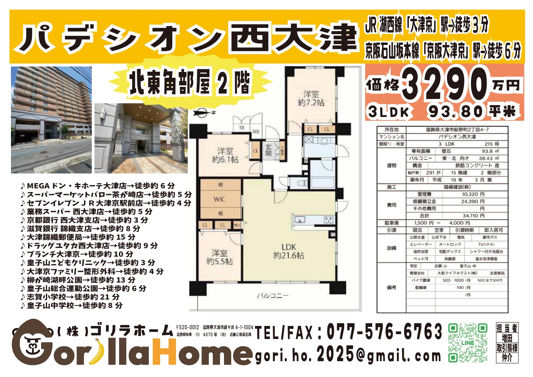 | 交通 | JR湖西線「大津京」駅 (徒歩3分) 京阪石山坂本線「京阪大津京」駅 (徒歩6分) |