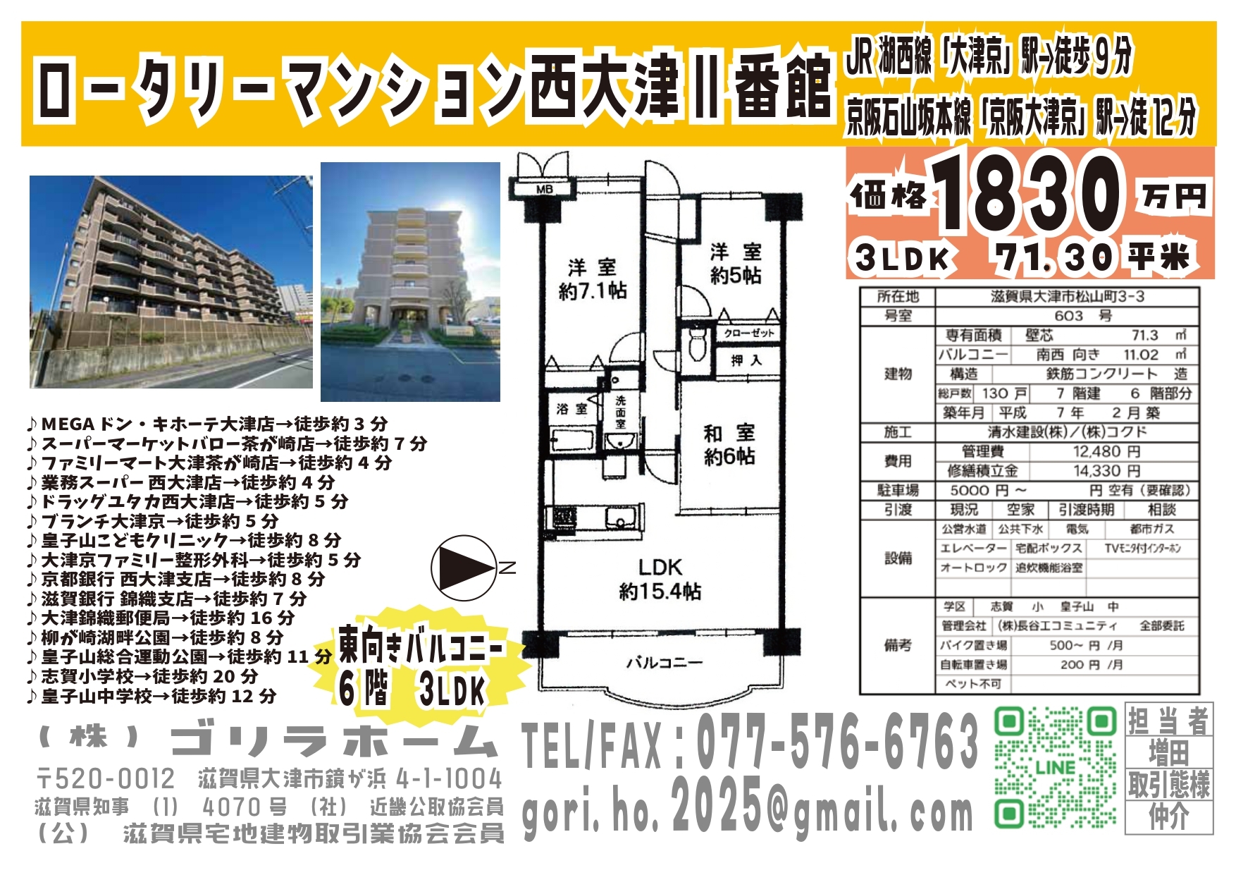 建物名 / 物件名 | ロータリーマンション西大津Ⅱ番館 |