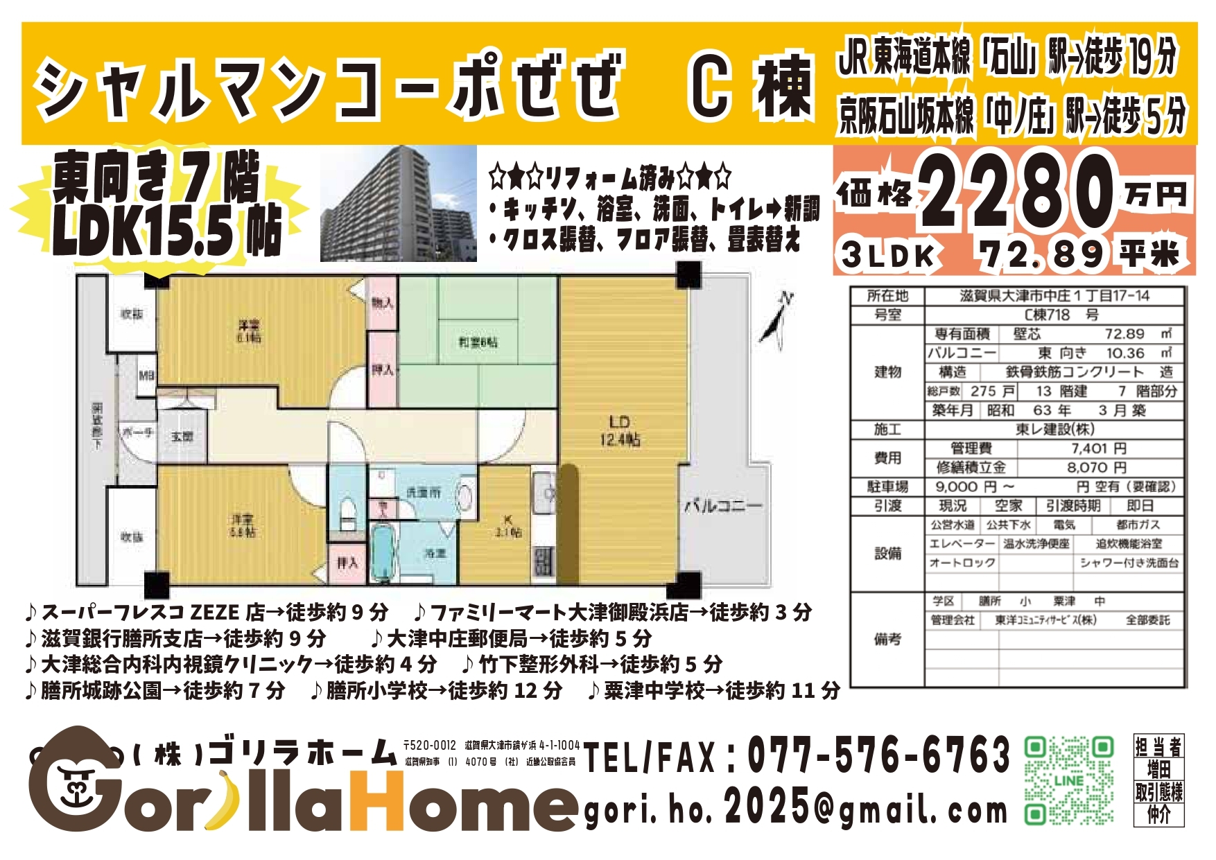 | 交通 | JR東海道本線「石山」駅 (徒歩19分) 京阪石山坂本線「中ノ庄」駅 (徒歩5分) |