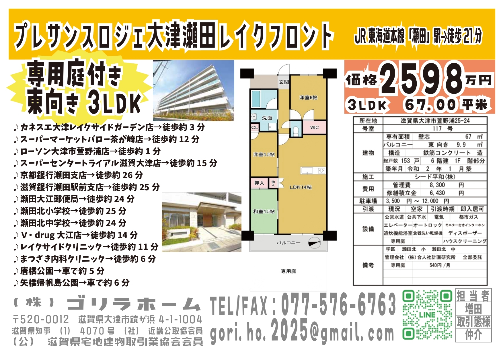 ☆★☆マンション敷地からすぐのところで琵琶湖花火見えます☆★☆ ☆★☆専用庭付き☆★☆ 公営水道、公共下水、電気、都市ガス、エレベーター、宅配ボックス、TVモニタ付きインターホン、食器乾燥機、追焚機能浴室、オートロック、温水洗浄便座、シャワー付き洗面台 ディスポーザー付き ペット飼育 (管理規約による)🦍 |