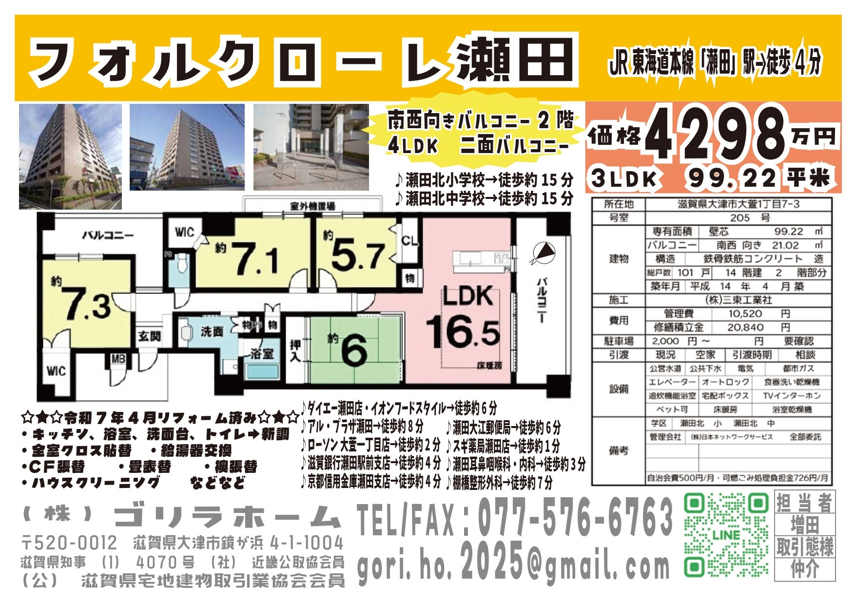 | 建物名 / 物件名 | フォルクローレ瀬田 |