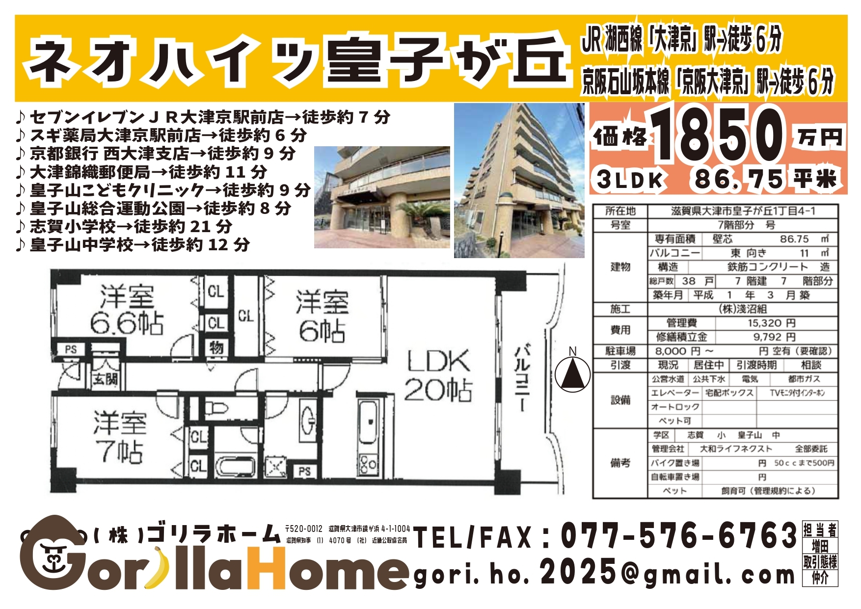 | 交通 | JR湖西線「大津京」駅 (徒歩6分) 京阪石山坂本線「京阪大津京」駅 (徒歩6分) |