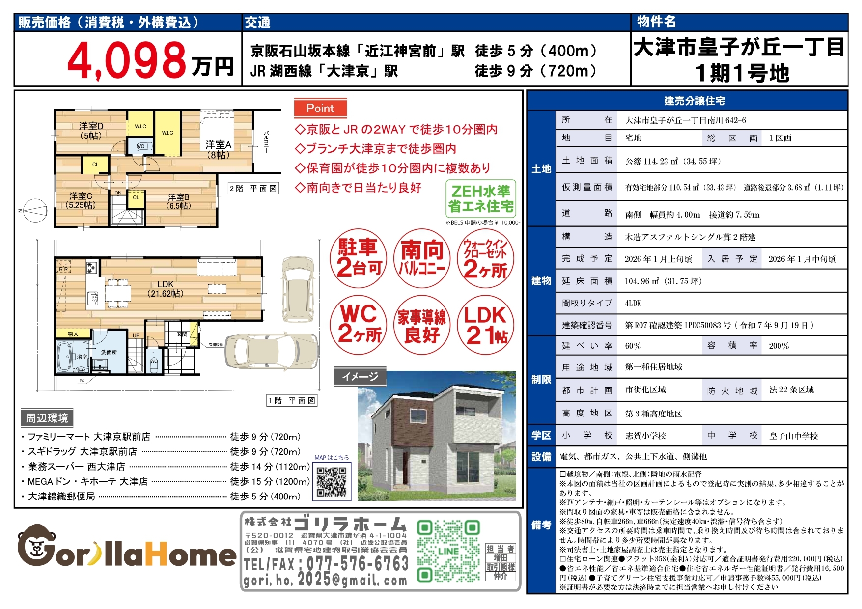 | 建物名 / 物件名 | 大津市皇子が丘1丁目1期1号地 |