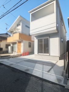| 築年数 | 新築 | 建物面積 | 土地:114.23㎡(34.55坪) 建物:延床面積104.96㎡(31.75坪) 仮測量面積 有効宅地部分:110.54㎡(33.43坪) 道路後退部分:3.68㎡(1.11坪) |