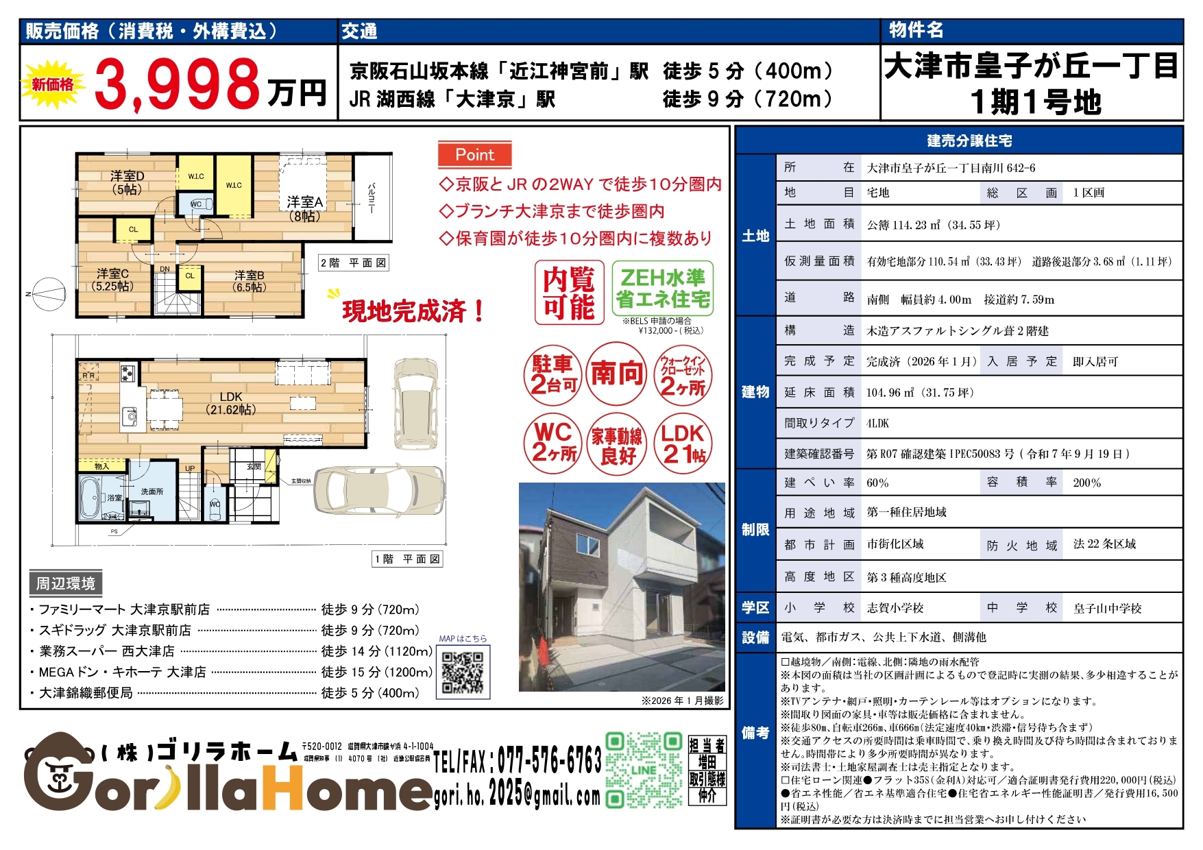 | 交通 | JR湖西線「大津京」駅 (徒歩9分) 京阪石山坂本線「近江神宮前」駅 (徒歩5分) |