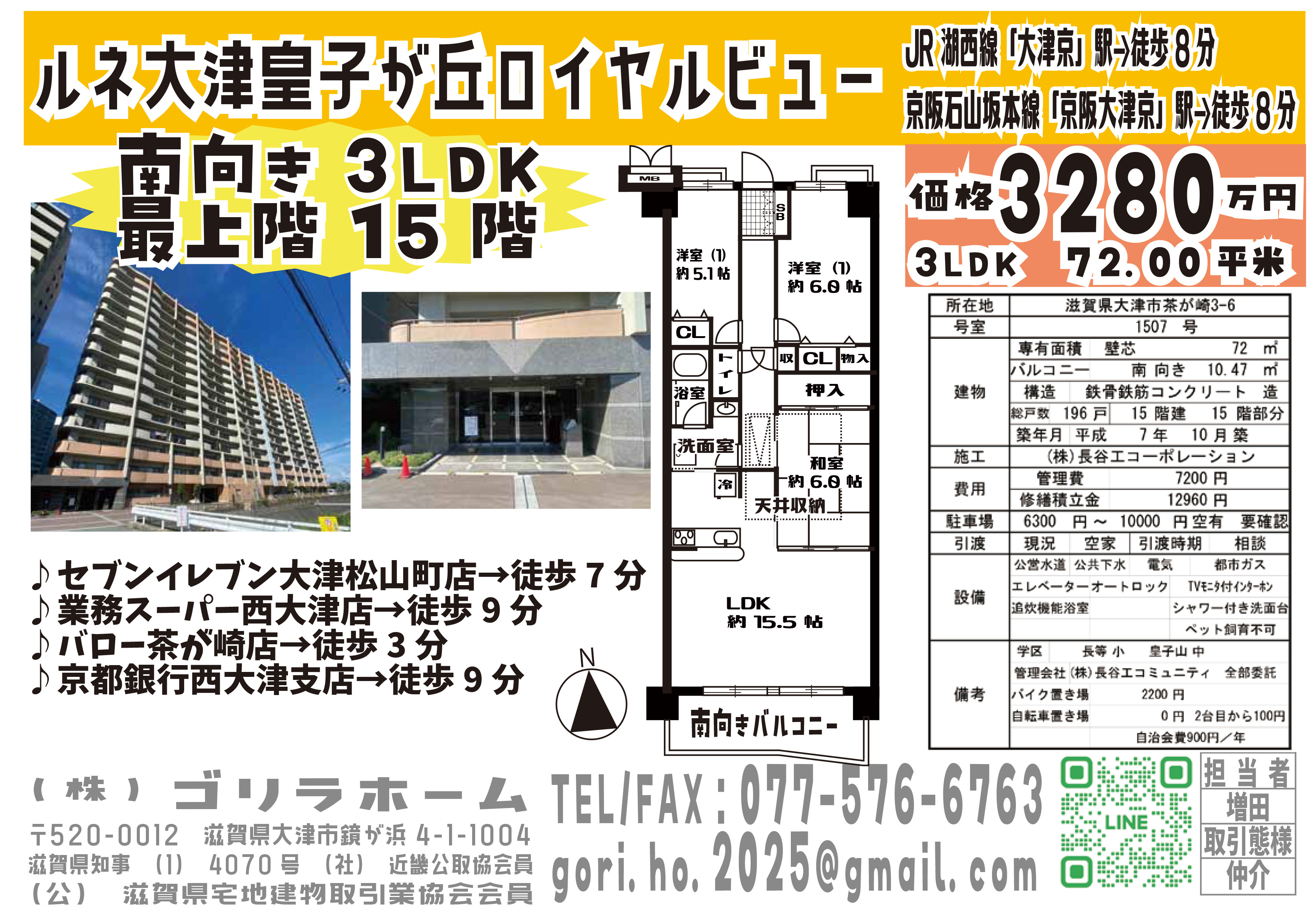 交通 | JR湖西線「大津京」駅(徒歩8分) 京阪石山坂本線「京阪大津京」駅(徒歩8分) |